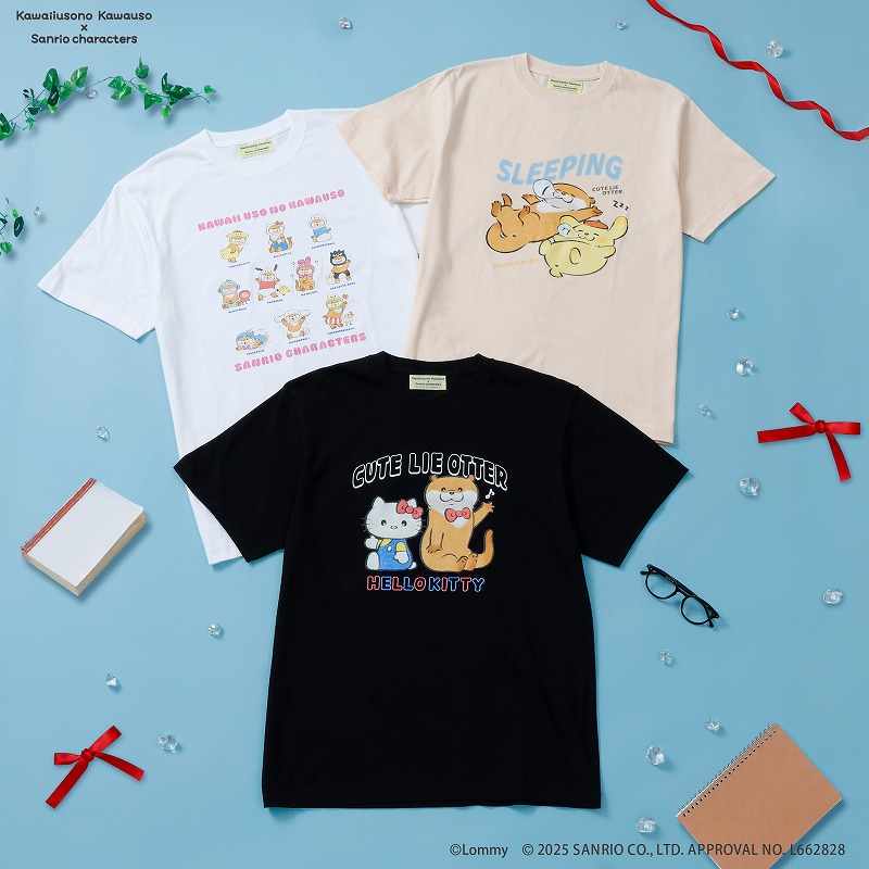 可愛い嘘のカワウソ×サンリオキャラクターズ Tシャツ カワウソ×キティ (ブラック)